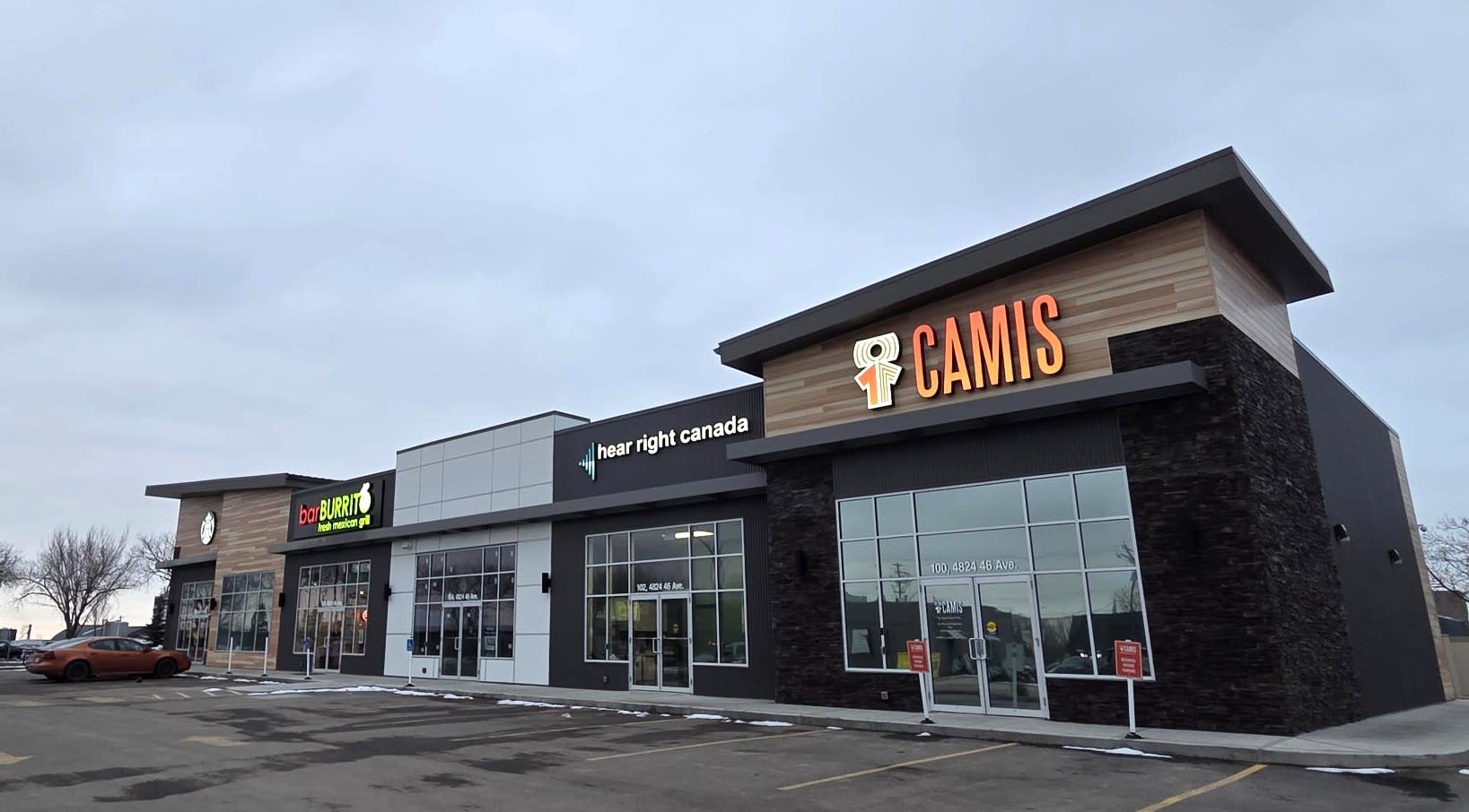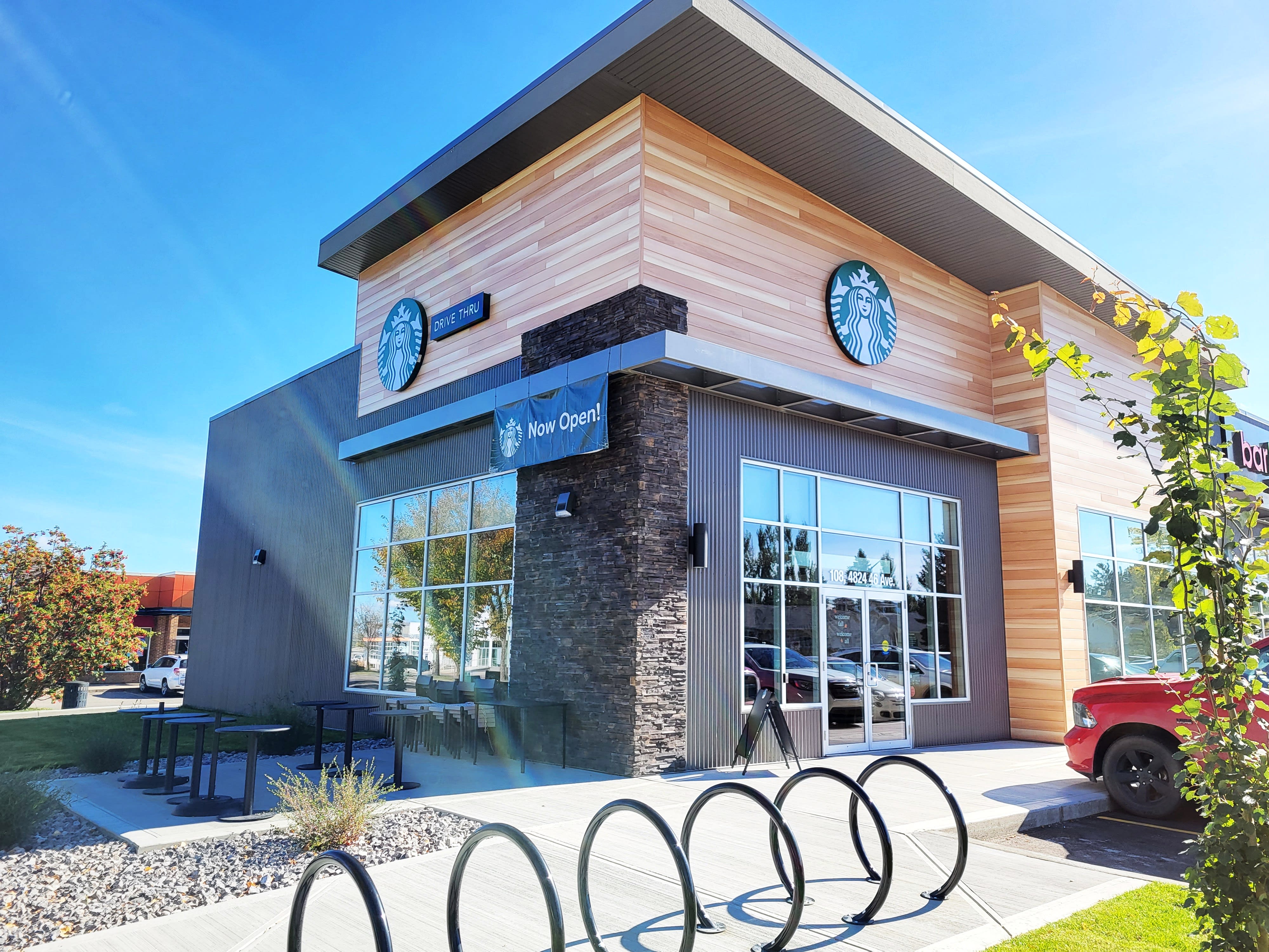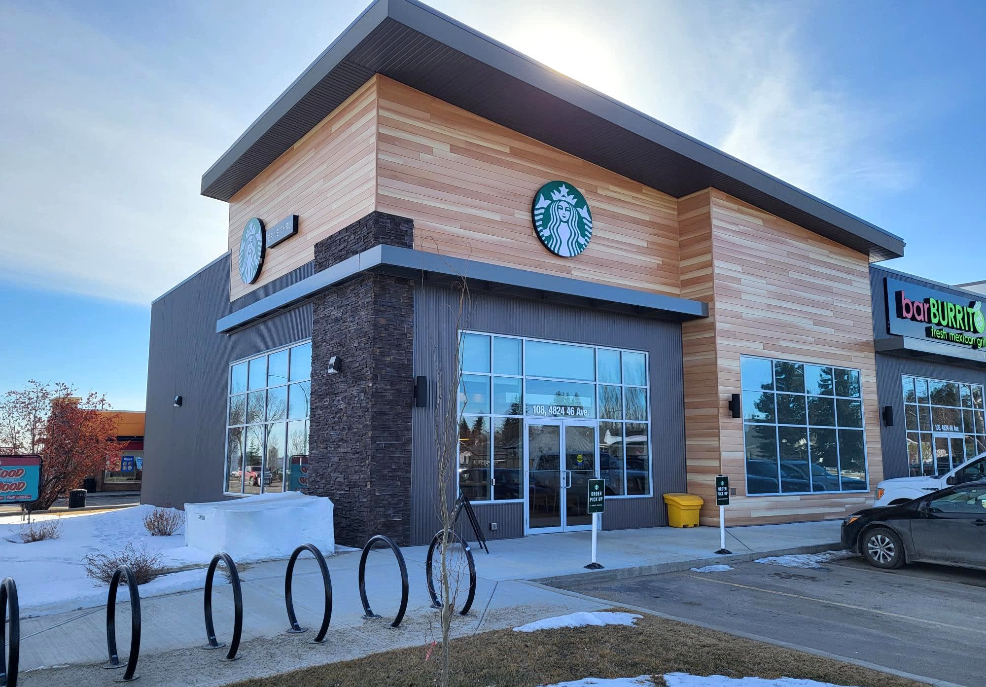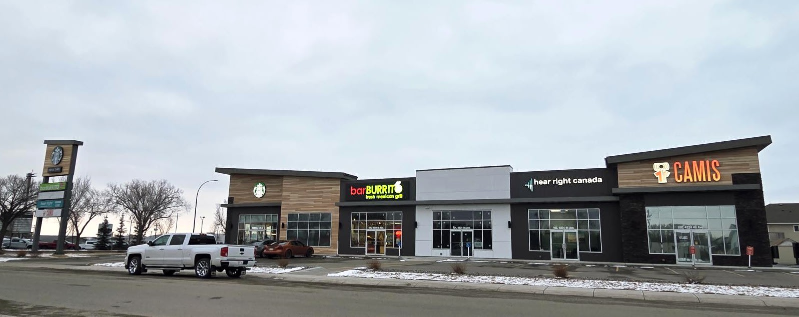 This project is a new stripmall development in Innisfail, Alberta with five bays for businesses. A Starbucks Coffee Shop is the anchor of the development, with a BarBurrito fast-food restaurant, Hear Right Canada Hearing Clinic, Central Alberta Medical Imaging Services (CAMIS), and one available space. We completed this project with contractor Bellco Ltd., and it is one of several similar developments which are being completed in smaller cities and towns throughout Alberta to bring Starbucks and other food vendors and services to these centres.